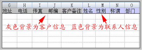在企业客户模板中,客户基本信息和联系人信息,不同的背景颜色显示,如下图: