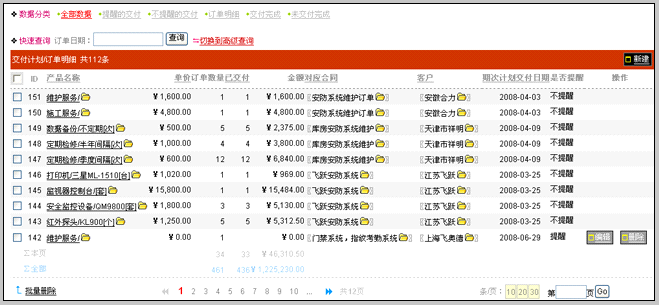 其主要作用是查看近期客户所签约购买的产品和数量(包含已经交付和没有交付)