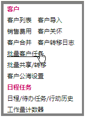 注意:处理时限,该任务中的某客户被分配或被领用后开始计时,如果该客户的此批量任务逾期未完成,则被自动重置,也就是说从当前执行人处收回,等待重新分配换人处理。如果该任务并不需要设置时限,可输入0。执行人,一般选择多个人,也就是说这些客户的事务交给哪些人执行。 点击保存。 进入批量客户任务视图,加入客户 点击新建立的批量任务主题,进入视图,如下: