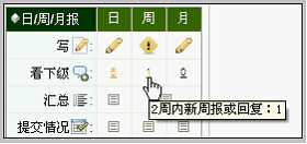 对回复的提示 对于下级用户来说,上级回复自己的周报后,可在周月报入口看到提示,如下:
