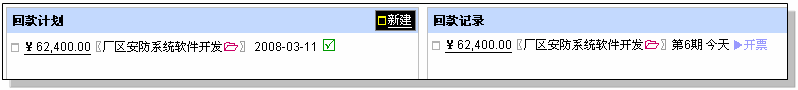 从开票记录关联新建回款计划 这种方式,需要预先建立开票记录,并且该开票记录的“回款计划”字段=未制定回款计划。 新建的开票记录后面会出现“回款计划”的按钮,如下图: