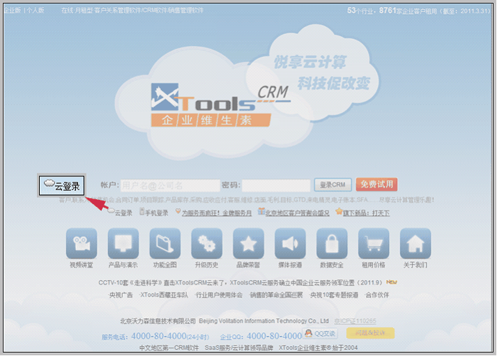 XTools公司网站首页点击云登录