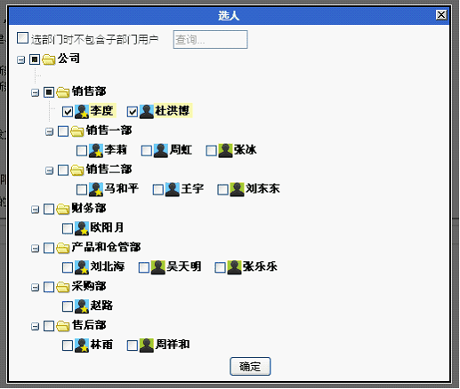 2.点击“点此”,在有权限新建订单的用户名前面打勾选择,确定