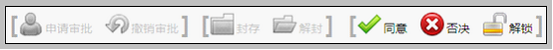 多级审批在视图中的显示 上面我们说过当审批人有审批数据对应客户权限时,可进入到合同或订单视图中,在视图中多级审批是如何显示,我们可从下图中,进行了解。视图中的审批操作与审批表下的相同。在视图中审批操作我们不在赘述。只将视图中的显示给大家说明。 如下图: 可在视图中,操作“同意”、“否决”、“解锁”操作。