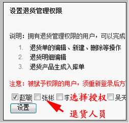 店面单退货权限设置