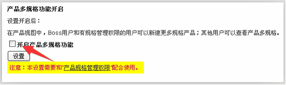 开启该权限后,方可使用产品多规格