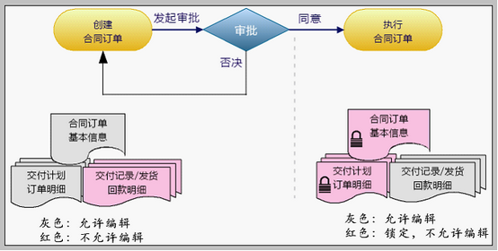合同订单多级审批过程中数据保护和锁定状态 当合同(订单)创建者发起“申请审批”后,合同(订单)未被审批同意之前,合同(订单)数据将处于锁定状态不可编辑。具体如下:
