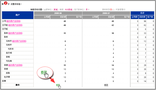 设置目标时,请注意:1.目标单位是万元,精度为0.1万元 2.组内目标值应等于组内各用户之和。