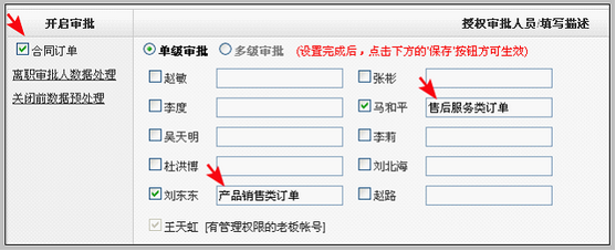 有管理权限的老板用户不需要设置,直接拥有订单审批权限。 |