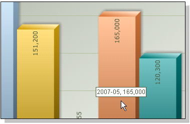 在这幅图上,可以看到每个立柱的顶端都有具体的数字显示,查看更为快捷。 如果您把鼠标放在立柱上,浮动看到纵横座标值的并排显示,如下图: