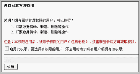如果您不启用这个功能,则所有用户均有权限添加回款。