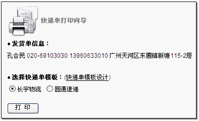快递单的打印 快递单打印分为两个位置:客户视图中可直接打印,订单视图中可以在发货单操作中打印。 下面我们分别来讲述这两种方法: 在客户视图中打印 进入客户视图后,可以看到在客户基本信息和客户跟踪模块之间,有一个打印快递单的按钮。 点击该按钮,点击后,进入打印快递单向导界面。如下图: