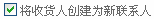直接填写收货人可创建为该客户的一个新联系人,如果您选择了: