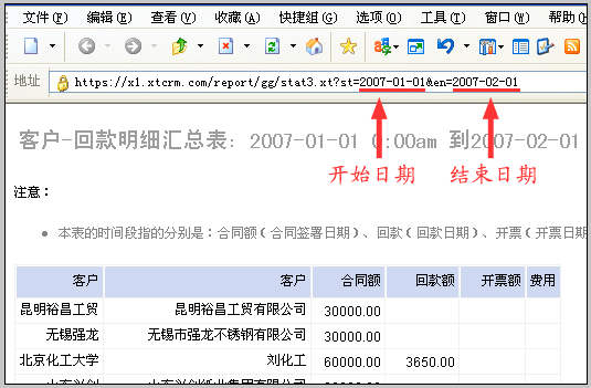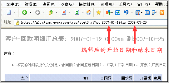 | 3. | 直接编辑地址栏中的开始日期和结束日期,回车确认,即可刷新到新的时间段